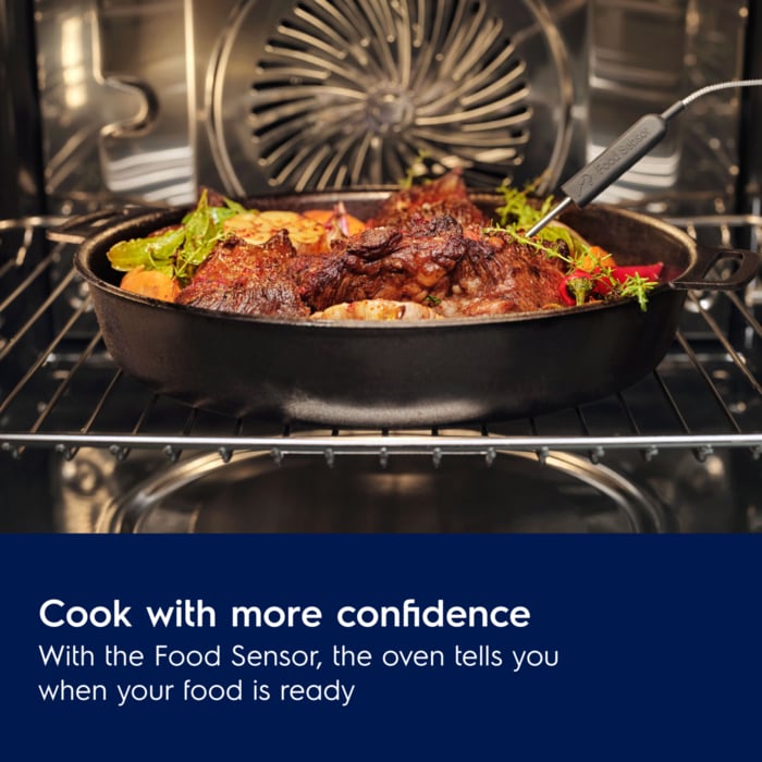 The Food Sensor helps you create delicious meals every time by continuously measuring the temperature in the center of your food. When it reaches the right temperature, the oven lets you know and stops cooking.